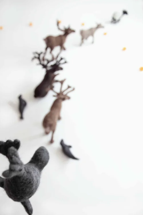 Decoy is a photo/sculpture series about human/animal relations in which human figures interact and pretend play with felted animal pelts, suits, and marionettes. The visual stories are about habitat loss (like deforestation), wildlife mismanagement, invasive species, adapting, and coexisting.